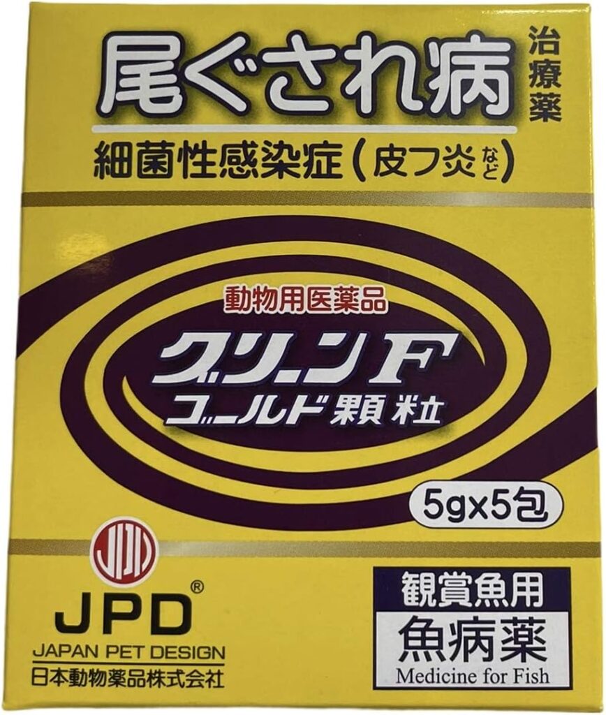 最初に水カビ病という、体の表面にふわふわしたカビがくっついている状態に気づき、グリーンFゴールド顆粒で治療することにしました。